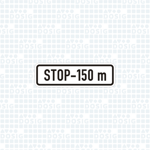 Tato dodatková tabulka se používá spolu se značkou 'Dej přednost v jízdě' jako předběžná informace ke značce 'Stůj, dej přednost v jízdě' a určuje vzdálenost k místu, kde je povinnost zastavit vozidlo platná.