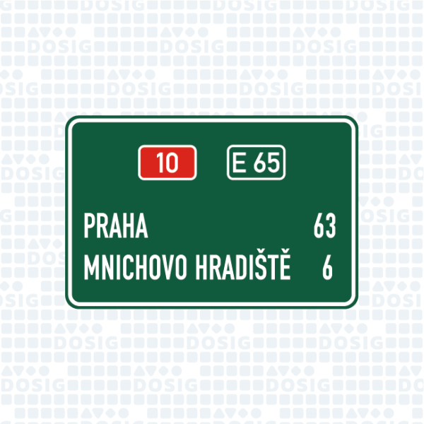 Tato dopravní značka informuje o cílech a o vzdálenosti k uvedeným cílům v kilometrech a slouží jako potvrzení správné volby dalšího směru jízdy.