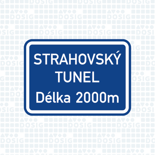 Tato dopravní značka upozorňuje na stavební objekt v trase pozemní komunikace, jako je tunel nebo most, a udává jeho délku.