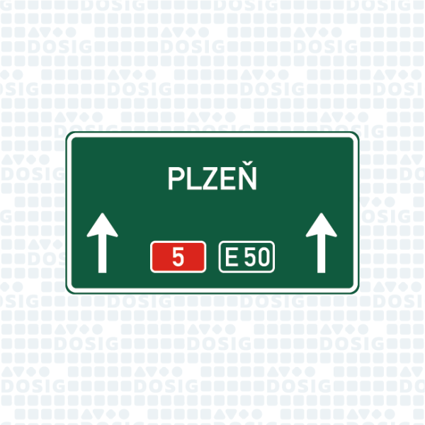 Tato dopravní značka informuje o cíli (cílech) a počtu jízdních pruhů ve směru přímo. Při umístění nad vozovkou šipky současně vyjadřují způsob řazení před křižovatkou. Lze ji také použít jako předzvěstnou, a v tom případě se v dolní části značky uvádí příslušná vzdálenost.