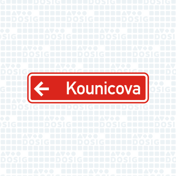 Tato dopravní značka poskytuje informace o názvu, průběhu a směru k vyznačené ulici.