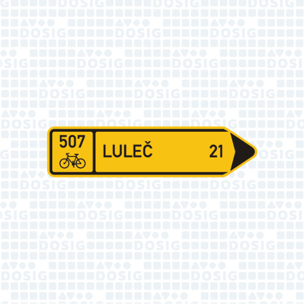 Tato dopravní značka poskytuje informace o směru a vzdálenosti v kilometrech k vyznačenému cíli nebo cílům cyklistické trasy a rovněž zahrnuje číslo (nebo jiné označení) této trasy.