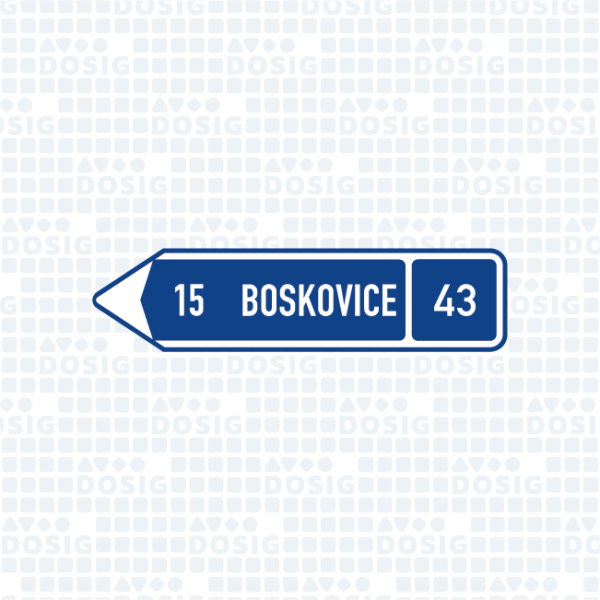 Tato dopravní značka informuje o směru a zpravidla i vzdálenosti v kilometrech k vyznačenému cíli (cílům). Číslo silnice se uvádí v rámečku.