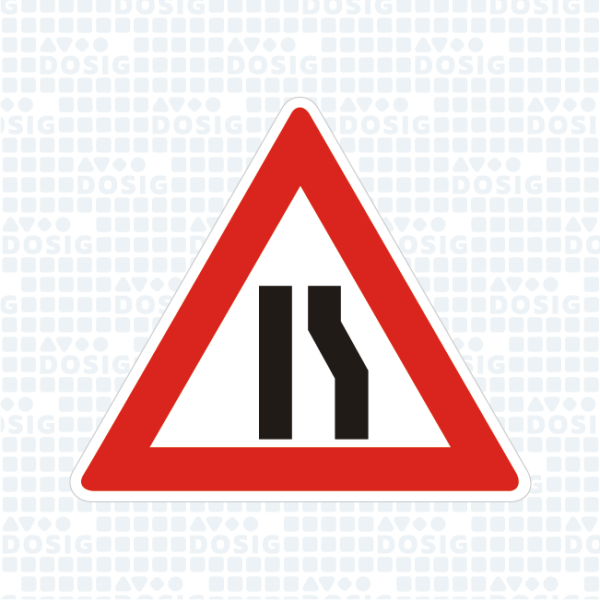 Tato dopravní značka varuje o místě na silnici, kde dochází k výraznému zúžení vozovky na jedné straně.