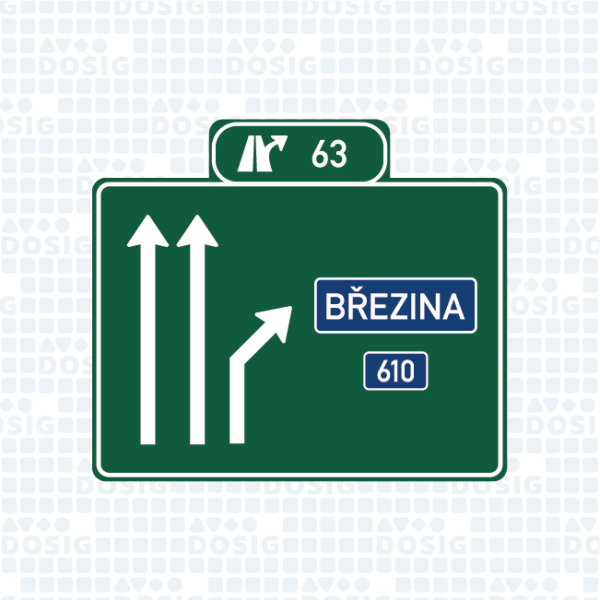 Tato dopravní značka informuje o cíli (cílech) a počtu a uspořádání jízdních pruhů ve směru přímo a ve směru odbočení. Nelze ji umístit nad vozovku. Může být také použita jako předzvěstná, v tom případě se v dolní části značky uvádí příslušná vzdálenost.