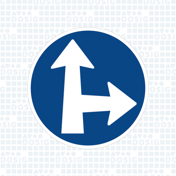 Tato dopravní značka přikazuje jízdu ve směru přímo a vpravo.