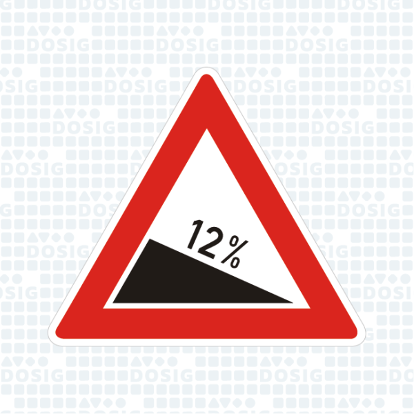 Tato dopravní značka varuje o úseku silnice, kde místní podmínky způsobují nebezpečí při klesání. Skutečný nejvyšší podélný sklon vozovky je uveden na samotné značce.
