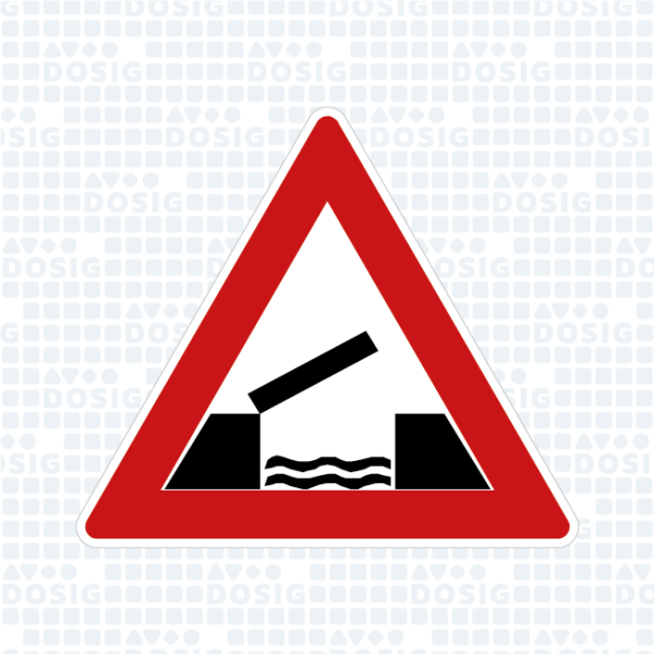 Tato dopravní značka upozorňuje na zvedací nebo jiný pohyblivý most.