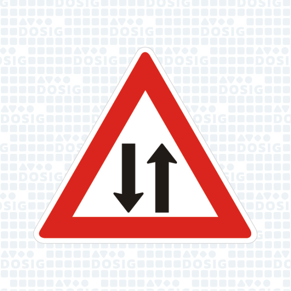 Tato dopravní značka upozorňuje na část silnice, kde je na rozdíl od předcházejícího úseku provoz vozidel veden dočasně nebo trvale v obou směrech. Stejně tak je tato značka používána k označení konce silnice s oddělenými jízdními směry.
