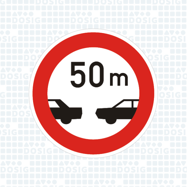 Tato dopravní značka udává zákaz udržovat řidičům odstup od předchozího vozidla menší než je uvedený údaj na značce. Řidiči musí dodržovat minimální bezpečný odstup, který je specifikován na této značce.
